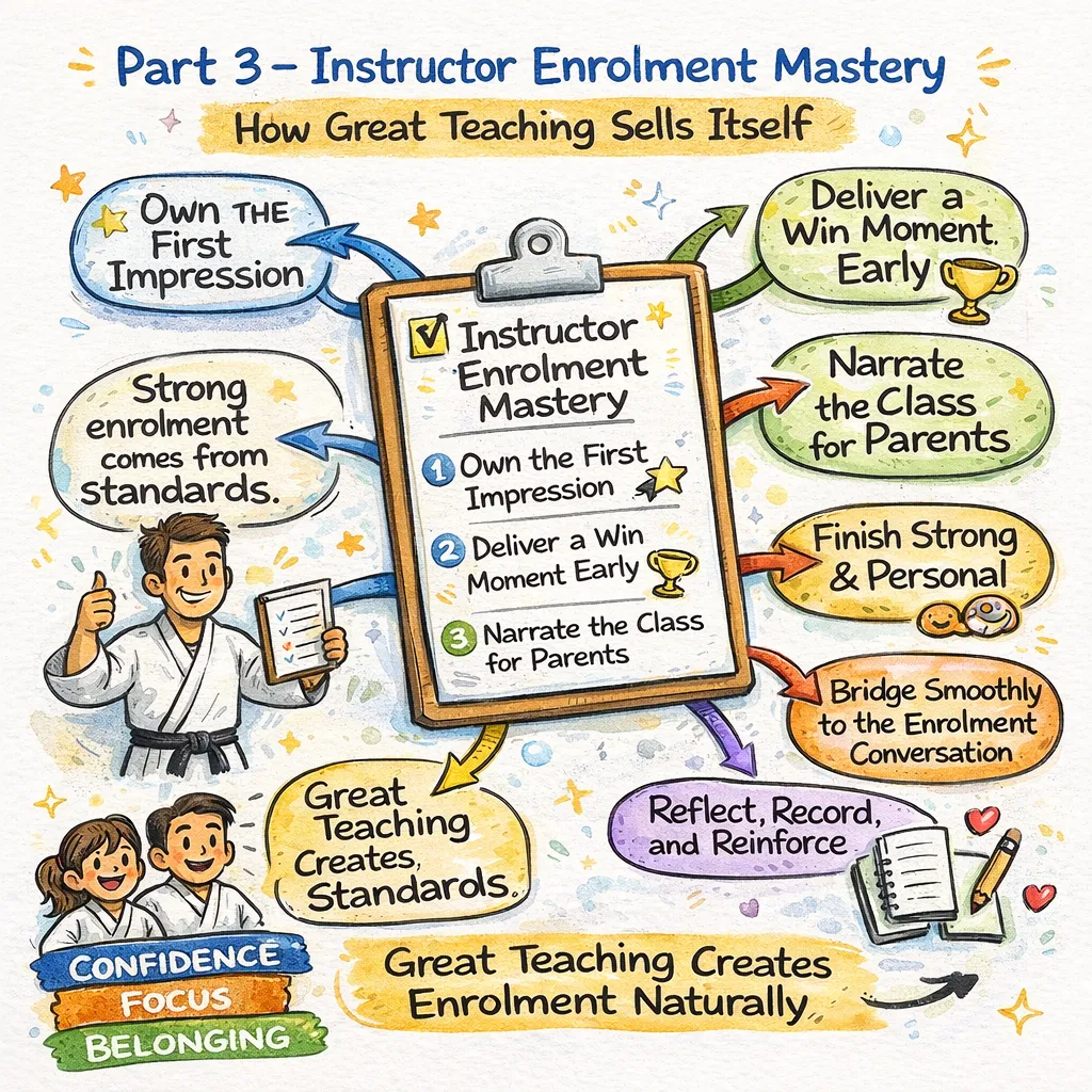 We also wrap up Instructor Enrolment Mastery, pulling together the key lessons around systems, standards, and consistency.